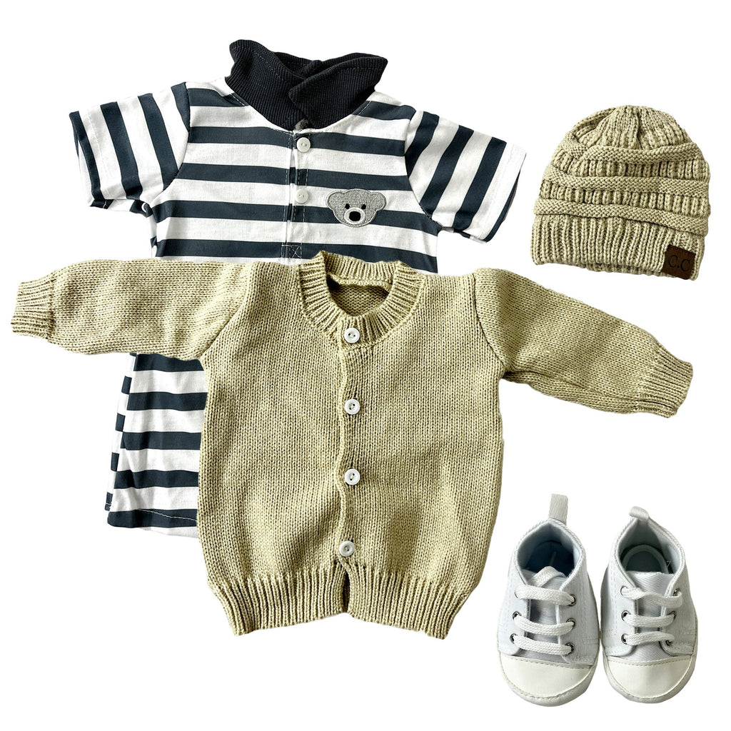 Conjunto A: Roupinha, Gorro, Brinquedo e Sapatinhos.